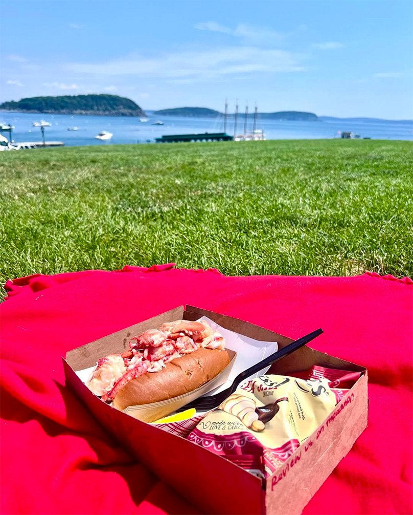 Just steps from Agamont Park, with sweeping harbor views over Frenchman Bay, we offer what might be the best “seating” in town. With an over-the-top lobster roll and a red picnic blanket in hand, this is an elevated way to enjoy Maine’s most iconic bite. Your Maine picnic starts here.
